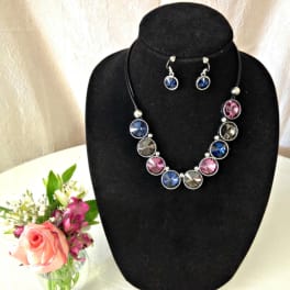 Price: $29.99Pink, Blue, Graphite Necklace and Earring Set
